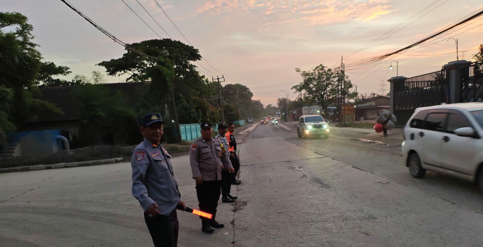 Giat Pengaturan Lalin Di Jalan Raya Wadas Bojonegara Ipda Gana Kanit Samapta dan Bripka Ghery Bhabinkamtibmas Laksanakan Strong Poin Pagi Hari