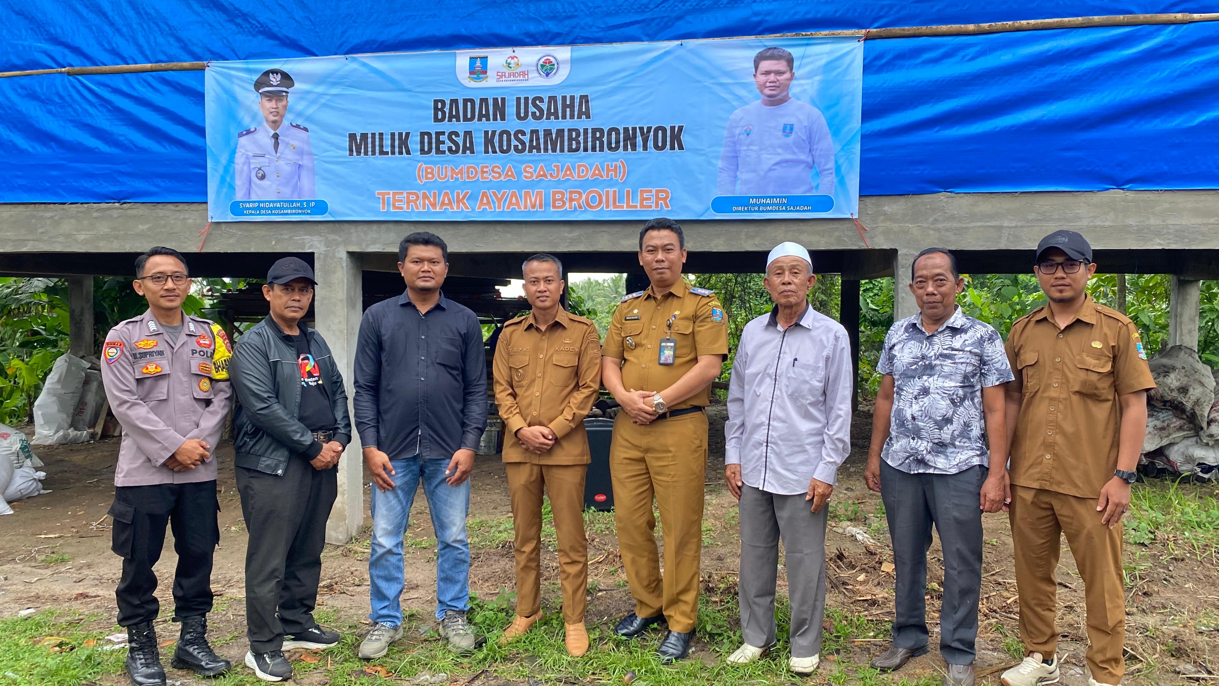 Kapolres Cilegon AKBP Dr. Martua Raja Taripar Laut Silitonga melalui Kapolsek Anyar Polres Cilegon Polda Banten IPTU TB. Zuaeni Kegiatan tersebut merupakan salah satu upaya Desa Kosambironyok dalam meningkatkan perekonomian masyarakat desa melalui pengembangan usaha peternakan ayam broiler yang dikelola oleh Bumdes. Launching ditandai dengan penyerahan simbolis penyertaan modal dan peninjauan lokasi pembibitan ayam broiler.
