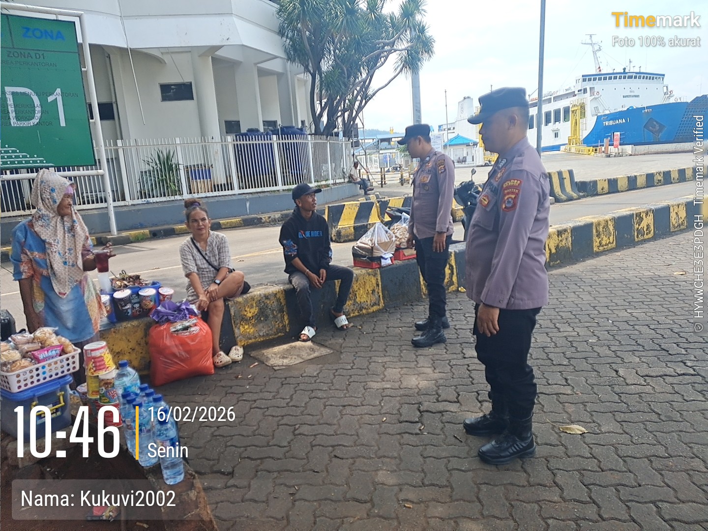 Cilegon - Personel Polsek Kskp Merak Polres Cilegon Polda Banten melaksanakan sambang dan patroli kawasan pelabuhan merak dalam rangka menjaga Harkamtibmas di Kawasan Pelabuhan Merak, Senin (16/02/2026).