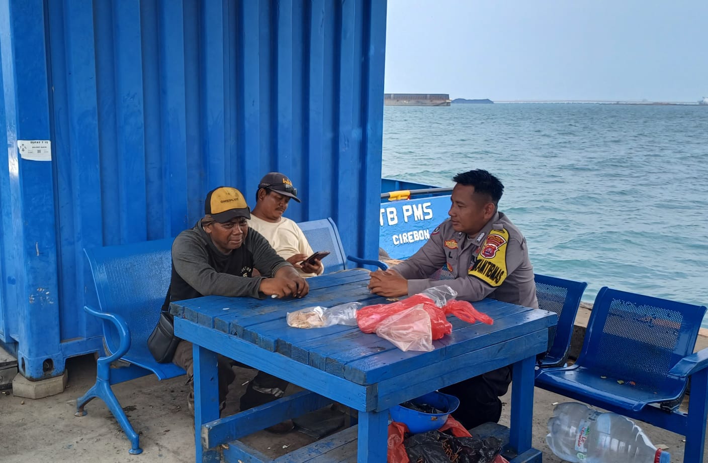 Dekat dengan Masyarakat, Personil Bhabinkamtibmas Polsek KP Banten Berbincang dengan Buruh Pelabuhan