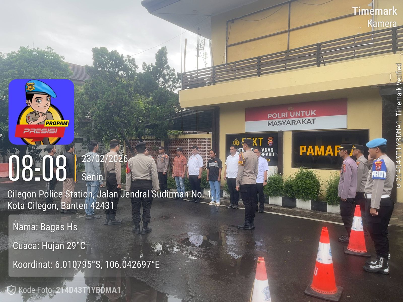 Kapolres Cilegon Polda Banten AKBP  Dr.Martua Raja Taripar Laut Silitonga melalui Kasatreskrim Polres Cilegon AKP Yoga Tama mengatakan, “kegiatan personel satreskrim polres cilegon melakukan piket di penjagaan pintu masuk Mako Polres Cilegon mengantisipasi adanya kejahatan yang menggangu kenyamanan dan keamanan mako Polres Cilegon dalam melakukan pelayanan kepada masyarakat kota Cilegon".