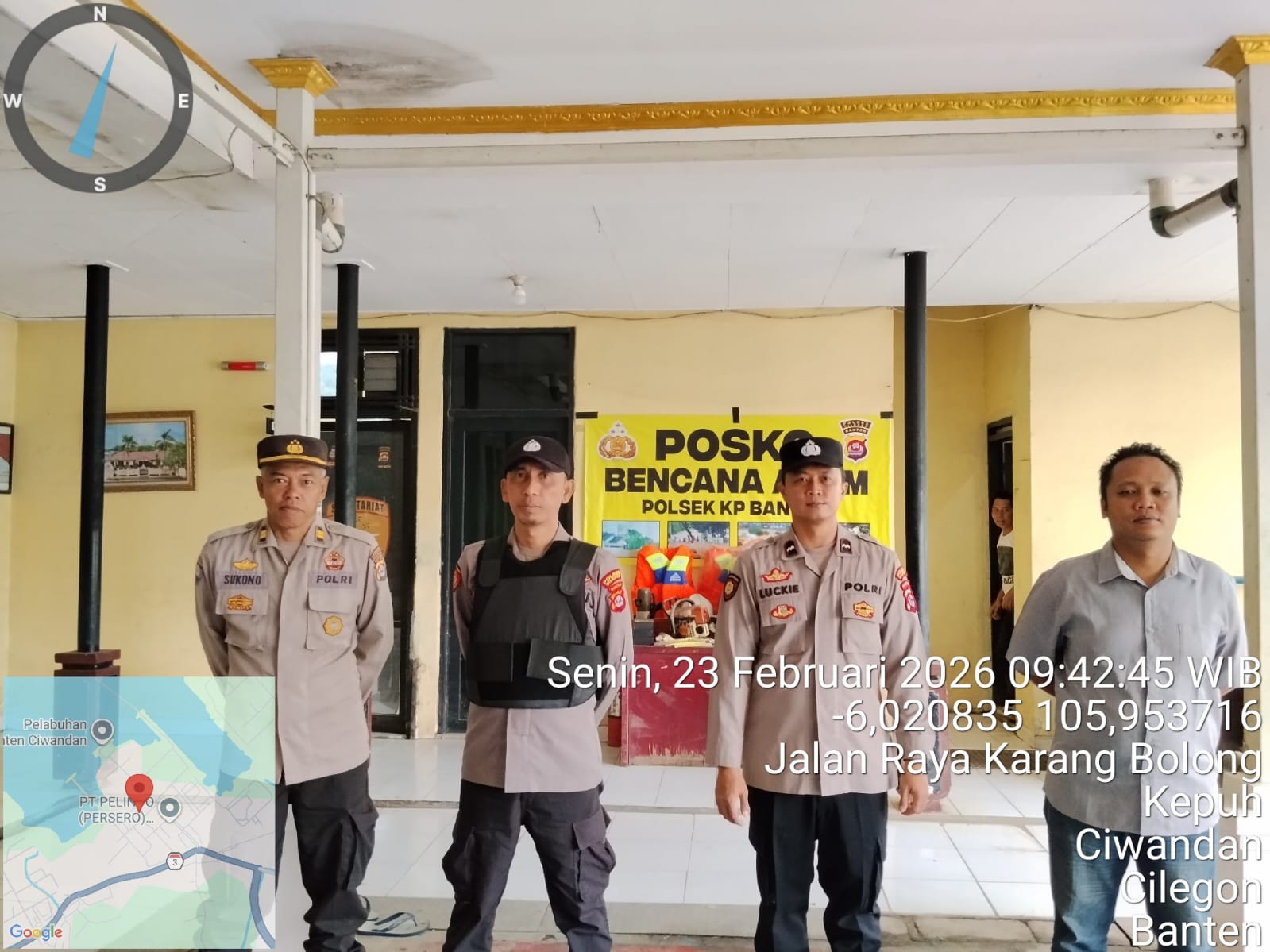Cilegon.  Personel piket jaga Polsek Kskp Banten Polres Cilegon Polda Banten melaksanakan Pengamanan Mako Polsek, Senin (23/02).