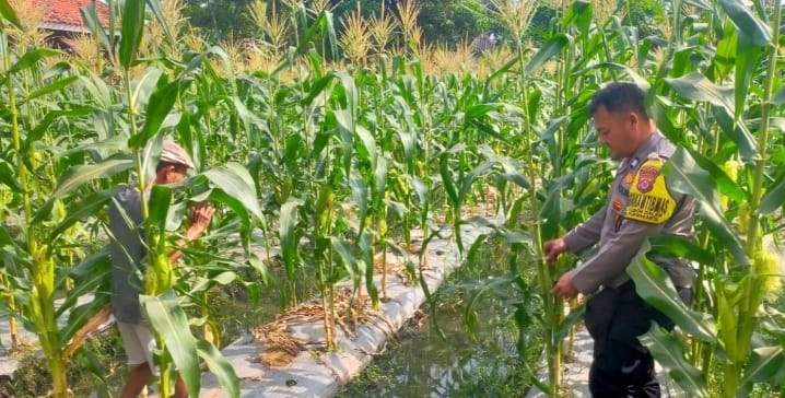 WUJUD KEPEDULIAN, PERSONEL BHABINKAMTIBMAS POLSEK PURWAKARTA DAMPINGI WARGA RAWAT TANAMAN JAGUNG