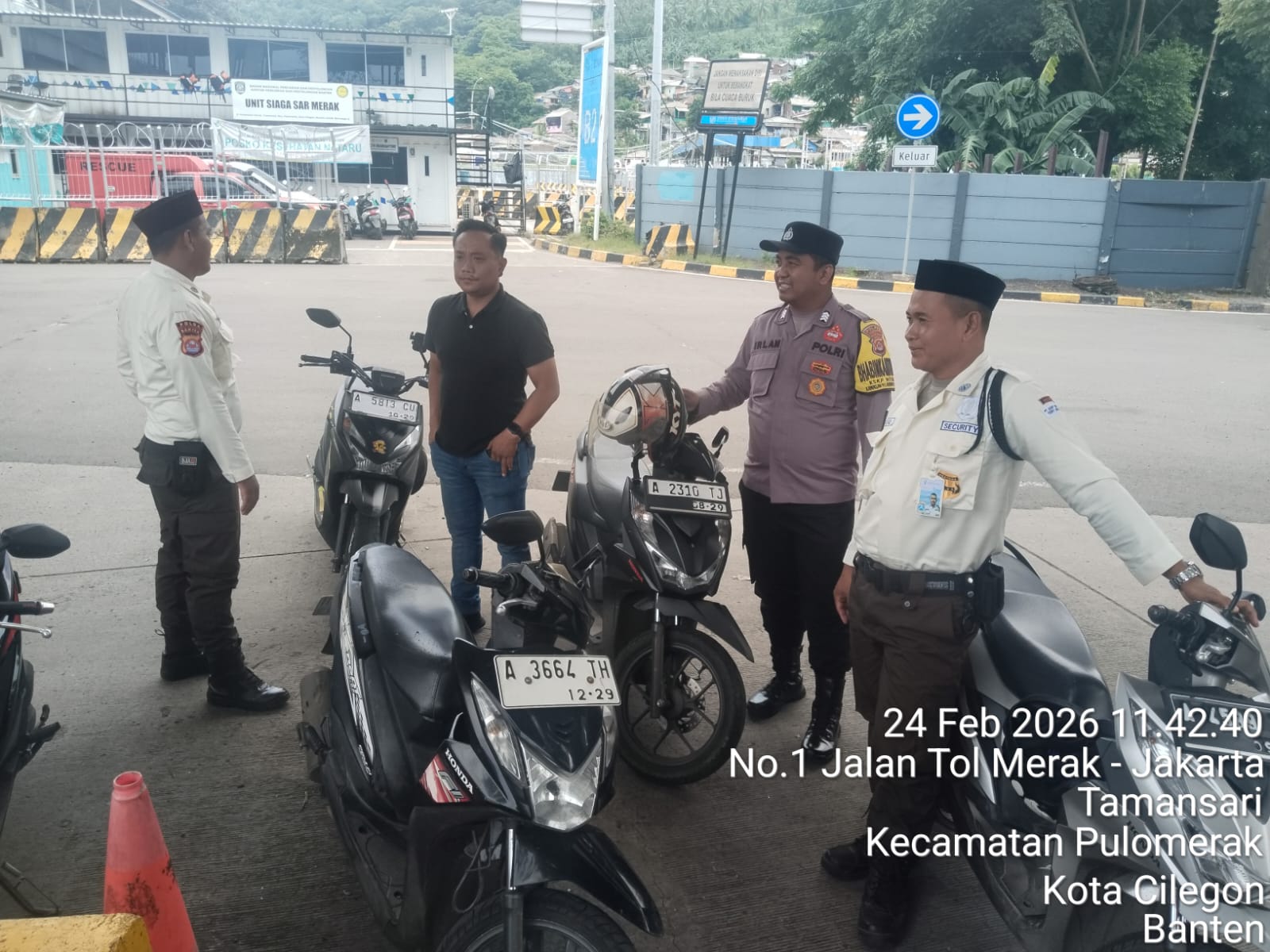 Cilegon - Personel Polsek Kskp Merak Polres Cilegon Polda Banten melaksanakan sambang dan patroli kawasan pelabuhan merak dalam rangka menjaga Harkamtibmas di Kawasan Pelabuhan Merak, Selasa (24/02/2026).