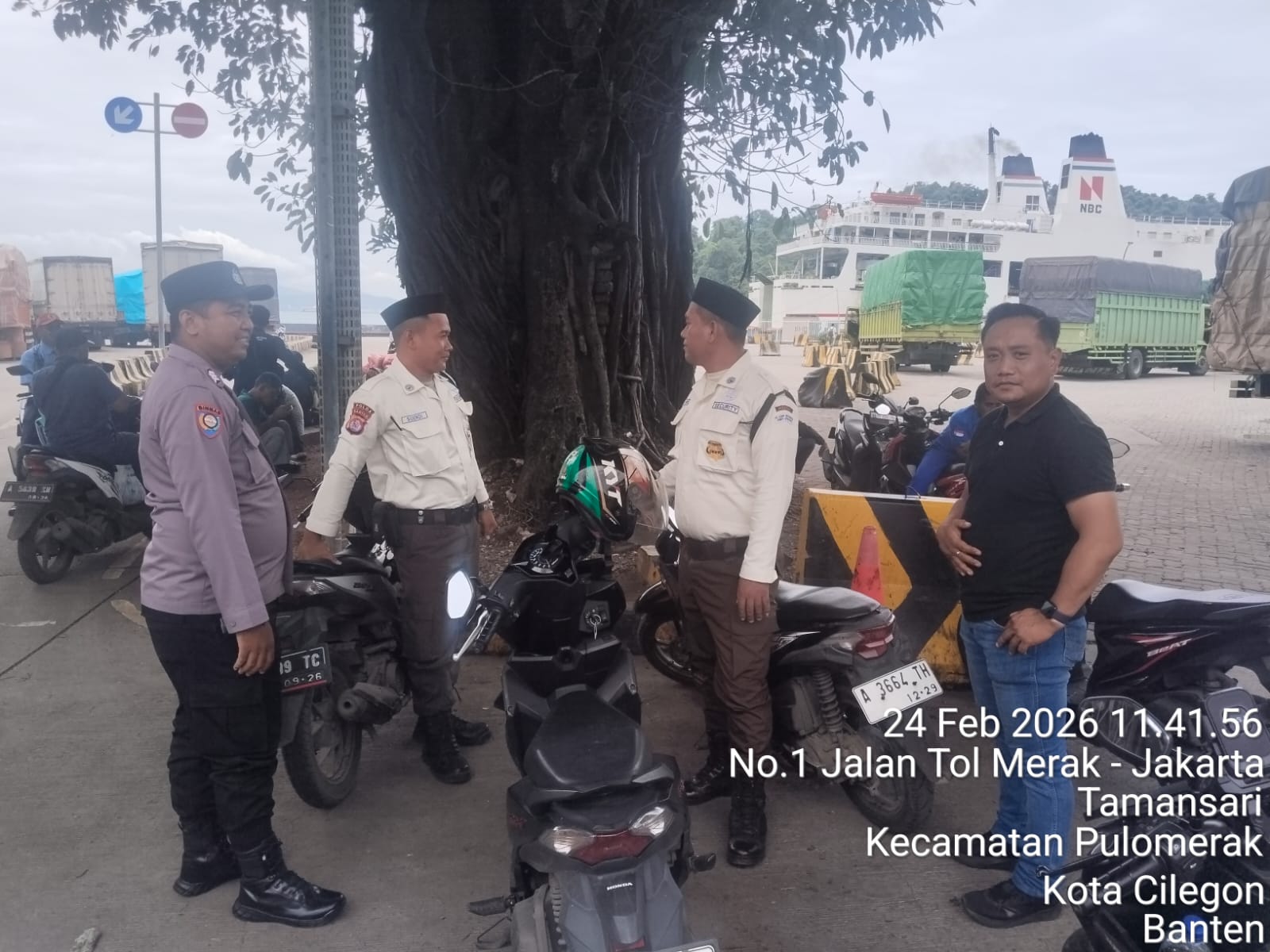 Cilegon - Personel Polsek Kskp Merak Polres Cilegon Polda Banten melaksanakan sambang dan patroli kawasan pelabuhan merak dalam rangka menjaga Harkamtibmas di Kawasan Pelabuhan Merak, Selasa (24/02/2026).