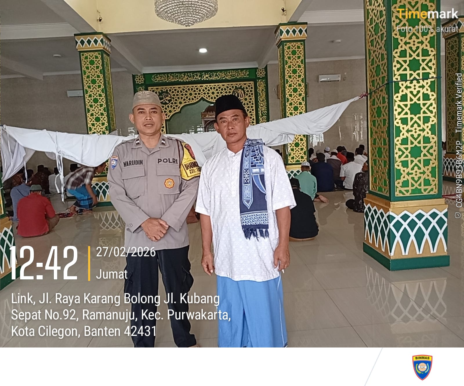 Cilegon - Bhabinkamtibmas Polsek Ciwandan Polres Cilegon Polda Banten Selesai melaksanakan Sholat secara berjama’ah dan Sampaikan Himbauan-himbauan Kamtibmas Kepada Masyarakat Jama'ah Yang ada Dimasjid, Jum'at (27/02/2026).