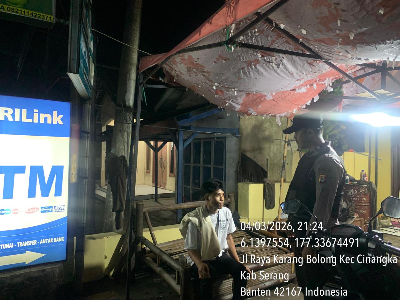 *Cilegon* – Dalam Rangka Pencegahan Kejahatan Jalanan dan Memelihara situasi keamanan dan menjaga serta memberikan rasa aman dan nyaman di masyarakat,Salah satu upaya untuk mewujudkan hal tersebut sebagaimana yang dilakukan oleh Personil Polsek Cinangka Polres Cilegon Polda Banten melaksanakan giat patroli blue light malam hari hingga menjelang pagi, Kamis (05/03/2026).