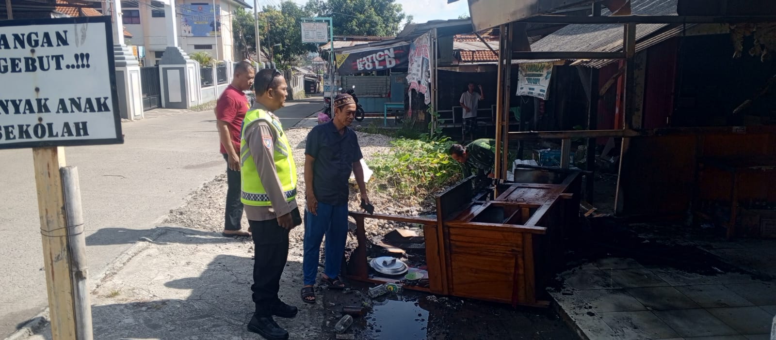 Warung Bakso Terbakar, Bhabinkamtibmas Polsek Ciwandan Datangi TKP