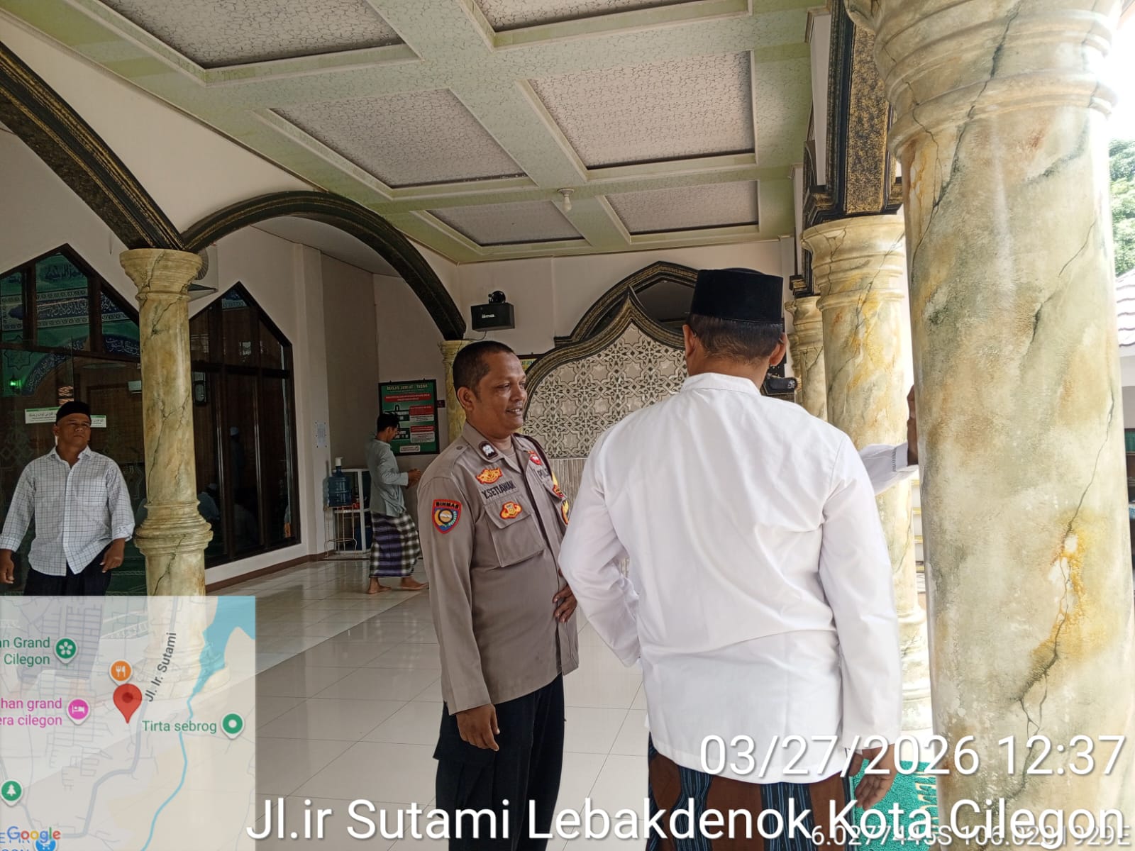 Cilegon - Dalam Rangka Memakmurkan Masjid Dan Sambang,Bhabinkamtibmas Polsek Ciwandan Polres Cilegon Polda Banten Sholat Berjama’ah dan Bersilaturahmi kepada para tokoh Agama sebagai upaya meningkatkan Ukhuwah Islamiyah dalam menjalin silaturahmi dan membangun komunikasi yang baik, Jum'at (27/03/2026).