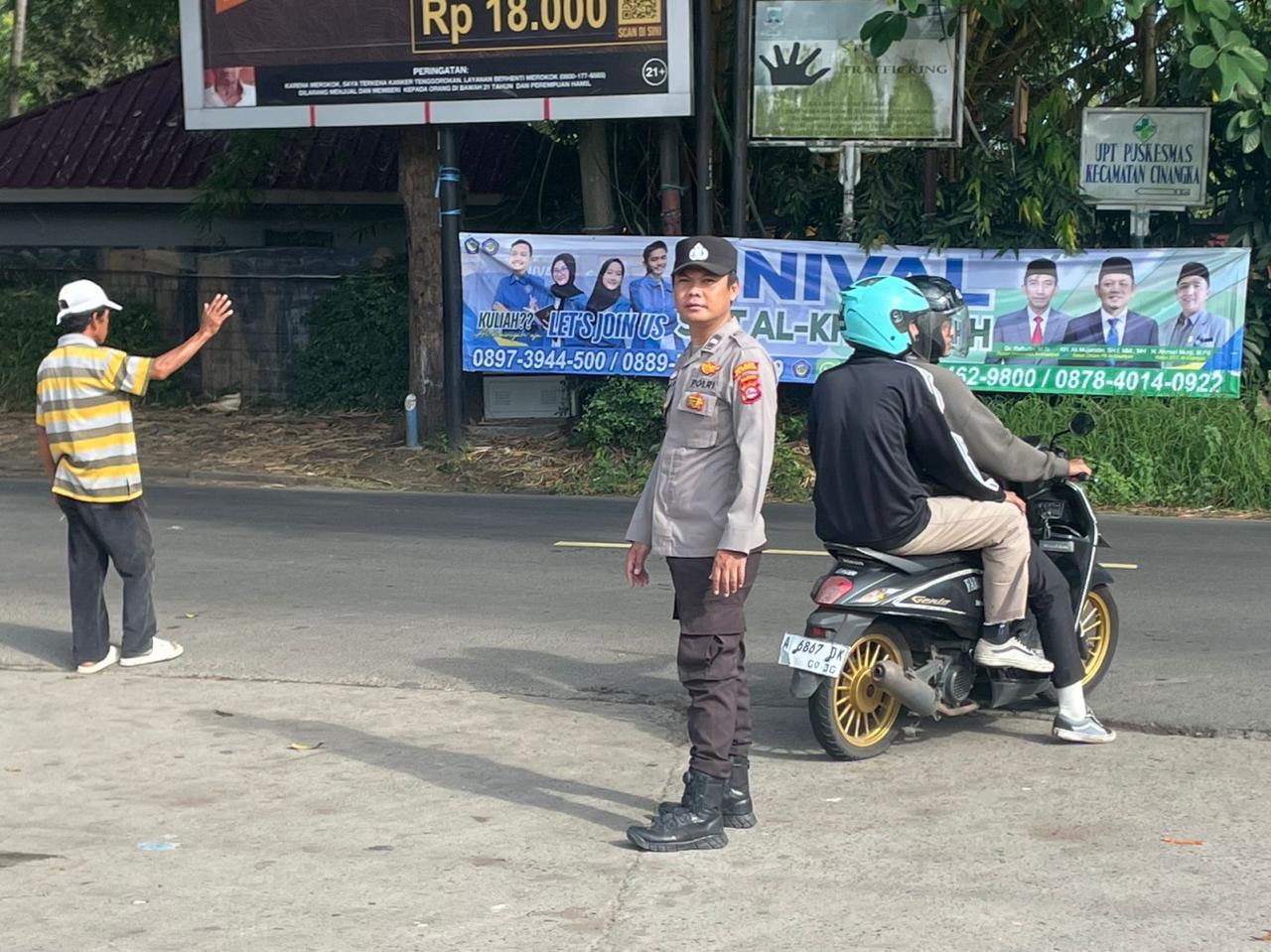 Kapolres Cilegon Polda Banten AKBP Dr. Martua Raja Taripar Laut Silitonga yang menggambarkan Kapolsek Cinangka AKP Rusnata mengatakan, “Guna melancarkan arus Lalu-lintas hari ini bertepatan dengan Libur Panjang, Personil Polsek Cinangka mengatur arus lalu-lintas yang Akan menuju Cinangka.