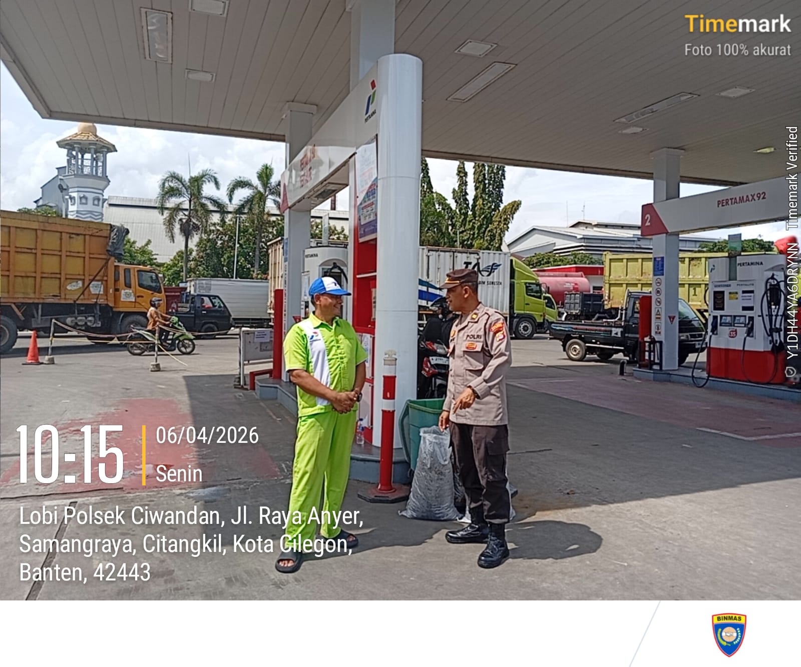 Cilegon - Polres Cilegon melaksanakan program Quick Wins Presisi dalam rangka kunjungan sambang dan DDS ke SPBU yang berada di wilayah hukum Polsek Ciwandan. Kegiatan ini juga bertujuan untuk memantau stok BBM di wilayah tersebut,Senin (06/04/2026).