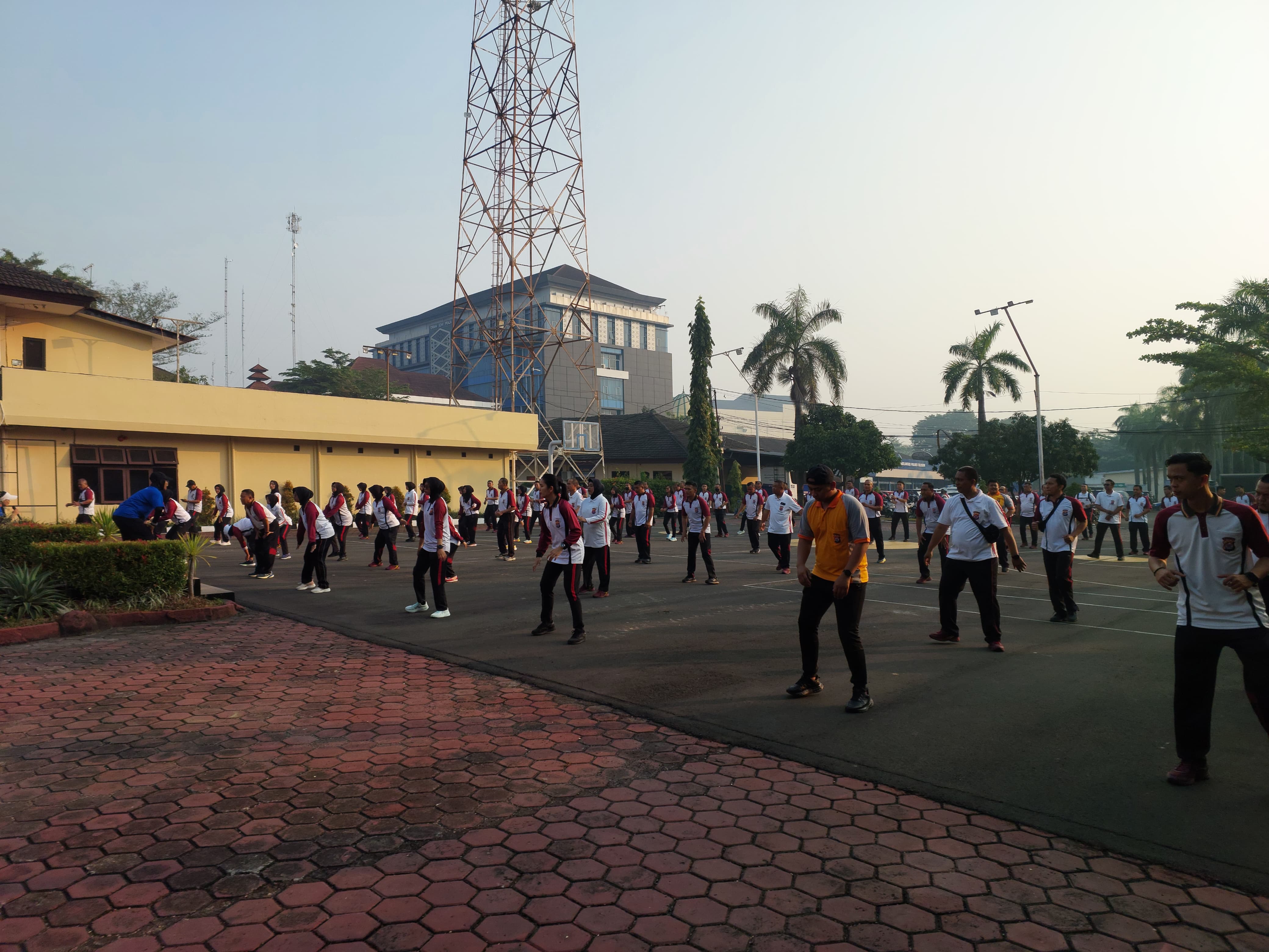 kegiatan Pembinaan Jasmani yang di laksanakan sebagai upaya membuat tubuh menjadi lebih sehat dan bugar. Hal ini sangat diperlukan untuk menunjang kegiatan sehari-hari personel Polres Cilegon. Jum’at (10/04/2026).
