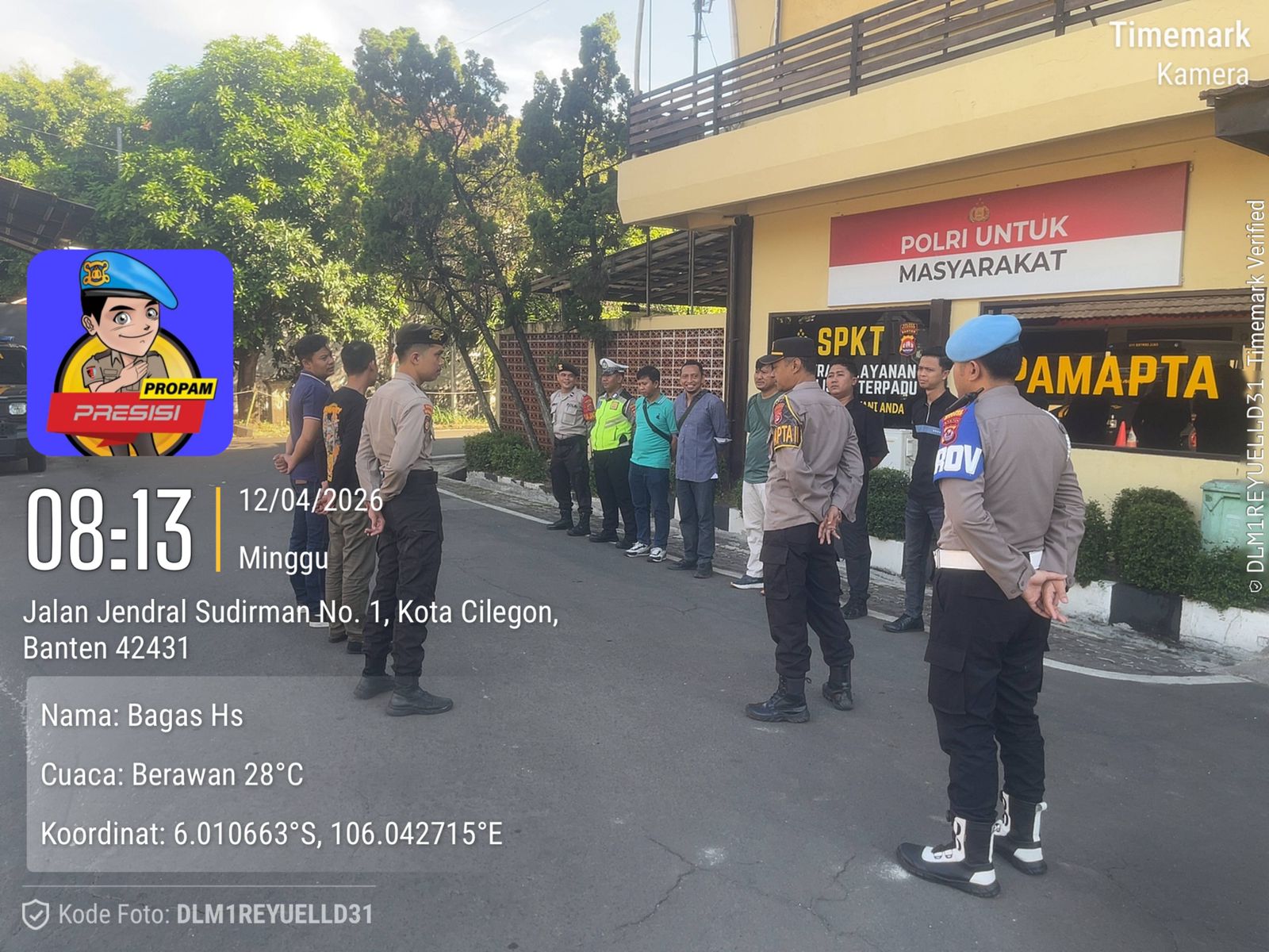 Kapolres Cilegon Polda Banten AKBP  Dr.Martua Raja Taripar Laut Silitonga melalui Kasatreskrim Polres Cilegon AKP Yoga Tama mengatakan, “kegiatan personel satreskrim polres cilegon melakukan piket di penjagaan pintu masuk Mako Polres Cilegon mengantisipasi adanya kejahatan yang menggangu kenyamanan dan keamanan mako Polres Cilegon dalam melakukan pelayanan kepada masyarakat kota Cilegon".
