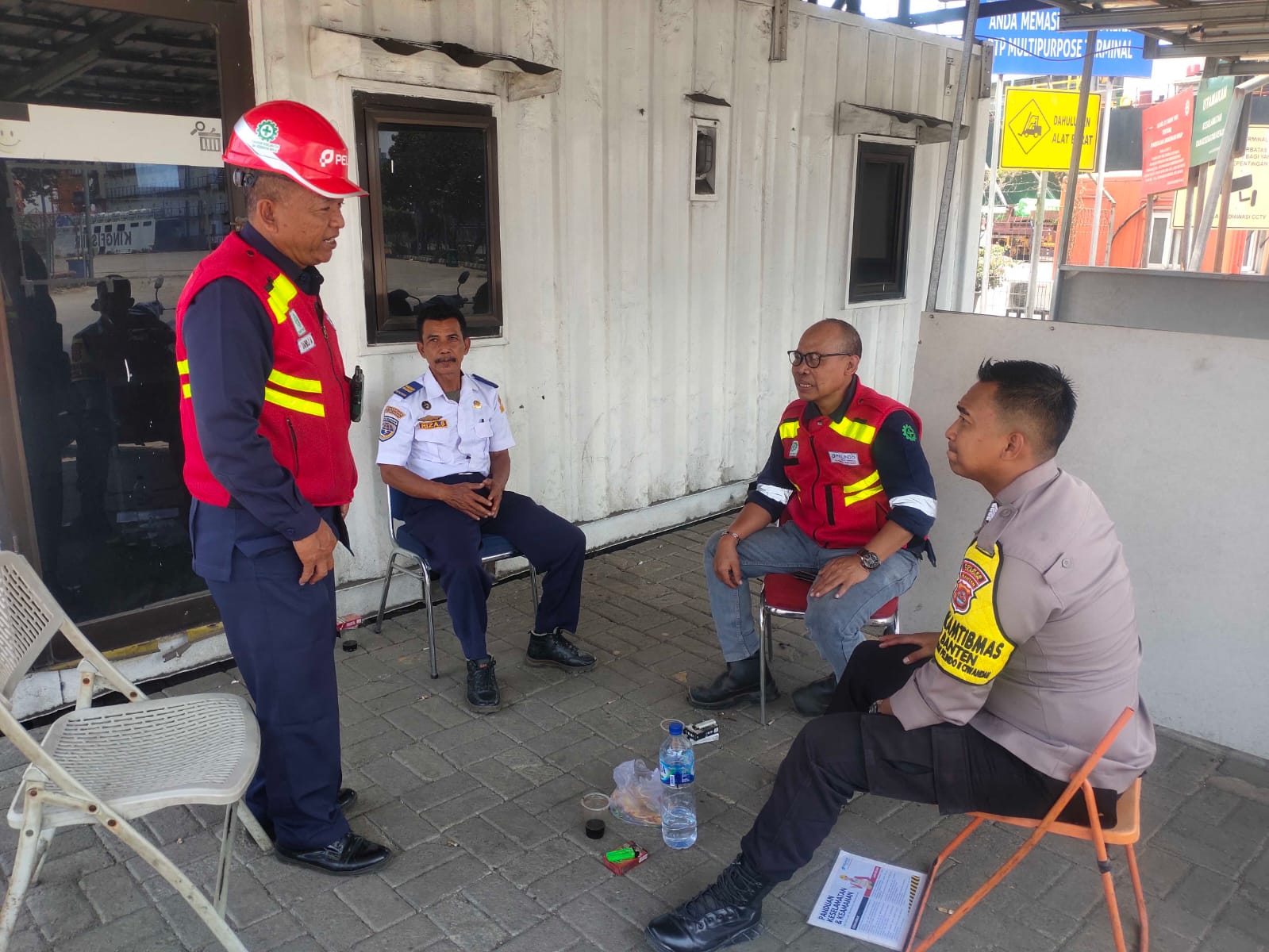 Personil Bhabinkamtibmas Polsek KP Banten Berbincang dengan Karyawan Pelabuhan